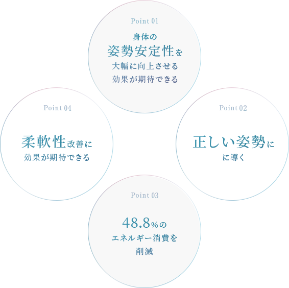 航空宇宙産業の新素材開発によって生まれた特殊な生地で、体幹を安定させ、体のバランスを整えながら自由な動きをサポートします。